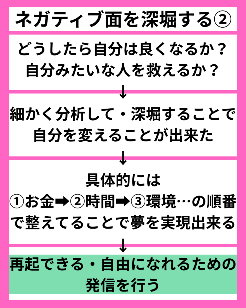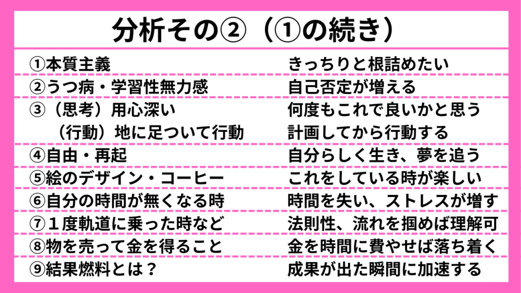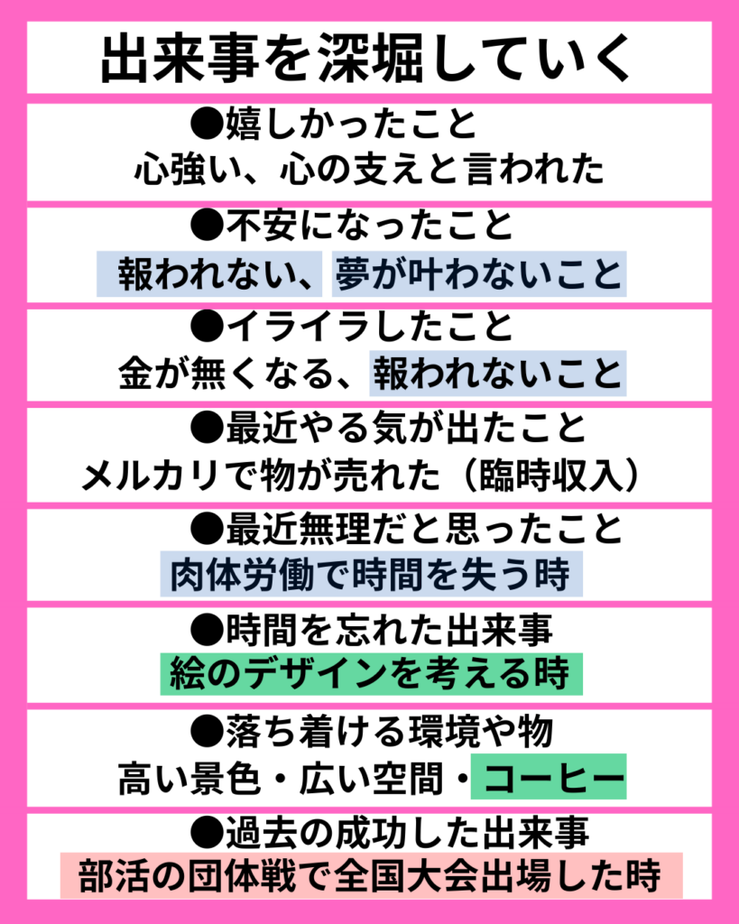 (例)自分の場合は「金」「時間」「報われない」⇦これらを深堀