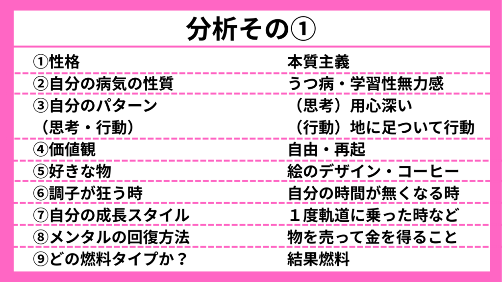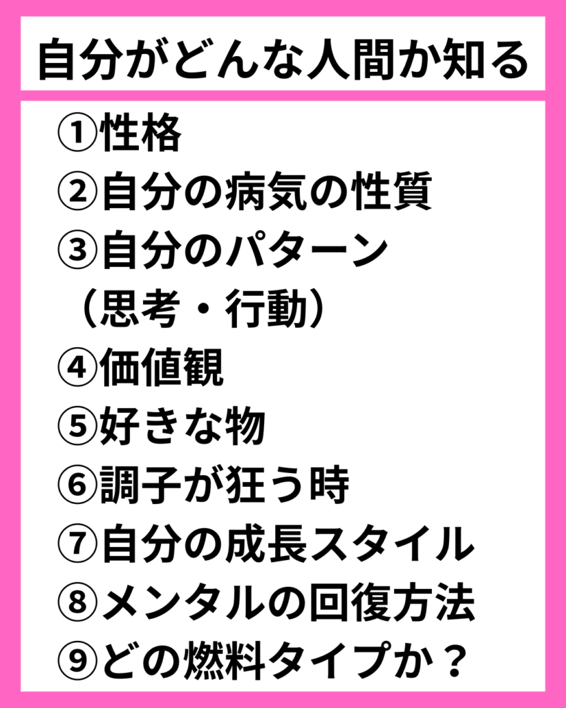 いきなり①~⑨のことを知ろうと言われてもわからないですよね。実際に私も自分を理解するのに何年もかかってしまいました。ですが時間を取り戻したおかげで現在このように自分自身を理解することが出来ました。