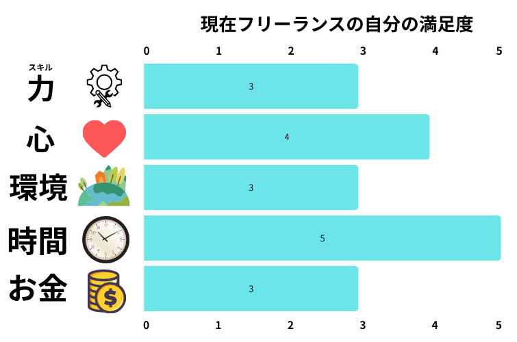 現在フリーランスの自分の満足度は次の図表になります。