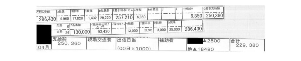 転職後の給料明細表です。